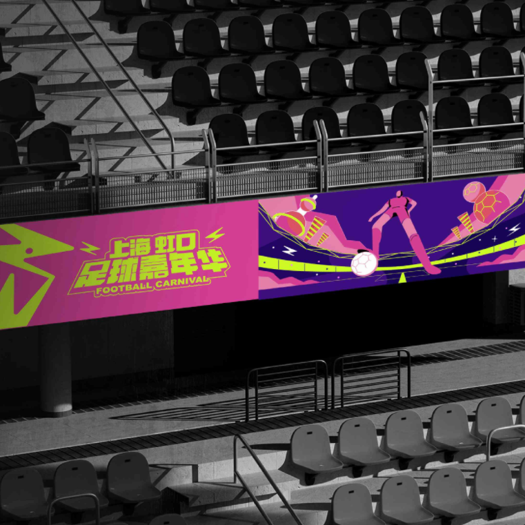 The participating teams in this competition consist of semi-professional players and retired stars, so we considered emphasizing the characteristics of joy, participation, and gathering rather than the competitive and confrontational aspects in the design. A carnival serves as an excellent entry point. In designing the visuals, we adopted a flat design style and chose illustrations that young people prefer. The bright, vibrant color scheme creates a relaxed and lively atmosphere, and the strong color contrast is more eye-catching and memorable in communication.